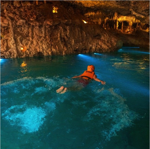 Stalactite River Swim inside ancient caves.