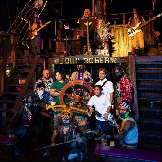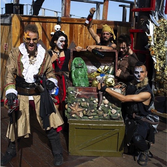 Introducción y actividades con la tripulación pirata a las 7:00 pm